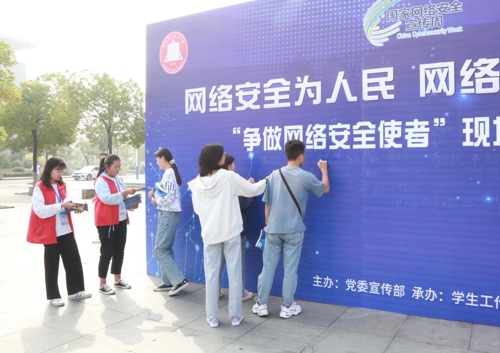 2020年国家网络安全宣传周主题为“网络安全为人民 网络安全靠人民”,通过主题签名、发放宣传手册、展板宣传等方式向在场的师生普及网络安全知识,得到了广大师生的积极响应。在志愿者的指引下,现场师生踊跃签名,争做网络安全使者,用实际行动表达维护网络安全秩序,文明健康上网的决心。