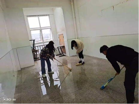 周四一二节课钱磊老师带领同学们学习了劳动纪律,这使同学们了解到更多的知识;三四及五六节课同学们对院部楼道进行了整理工作,同学们分工明确扫地,打水,洗拖把等,在同学们共同的辛勤努力下我院楼道焕然一新。