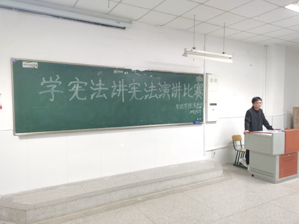 为深入贯彻落实习近平总书记关于宪法学习宣传教育的系列重要指示精神,进一步弘扬宪法精神,营造校园尊法学法用法的良好气氛,管理学院学生会实践部于10月29日在1101教室举办“学宪法讲宪法”活动。