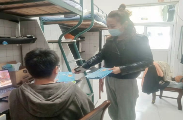 每到一个寝室,学生处心理健康教育科冯研老师等,都将事前结合疫情防控形势而精心制作的学生心理健康指导手册逐一发放,向同学们学生宣传讲解心理健康相关知识。