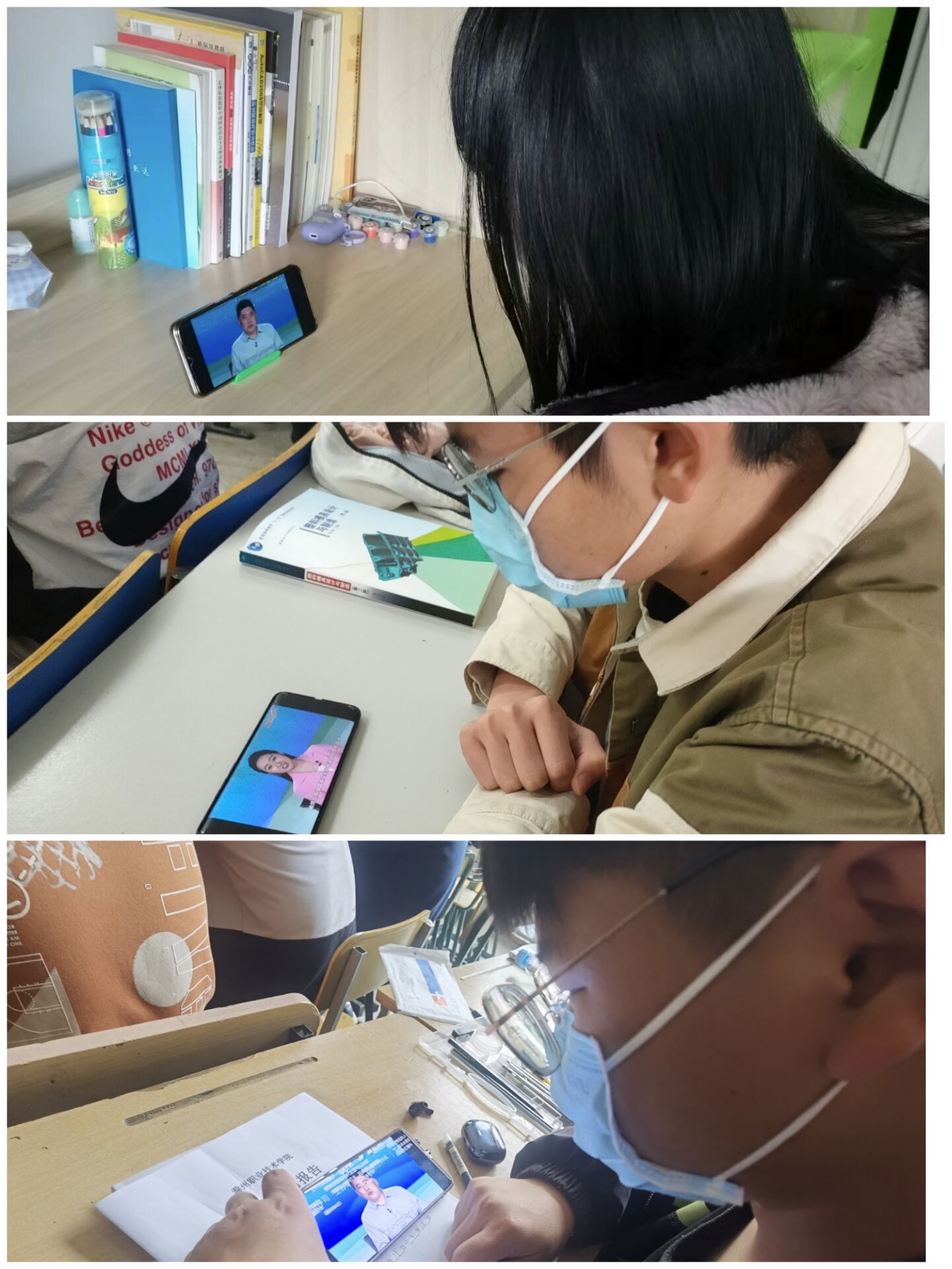 各班级按照学校疫情防控工作要求,实施错峰观看学习。组织师生在班级和寝室共同收看,确保学习质量和效果,安全防护落实到位。