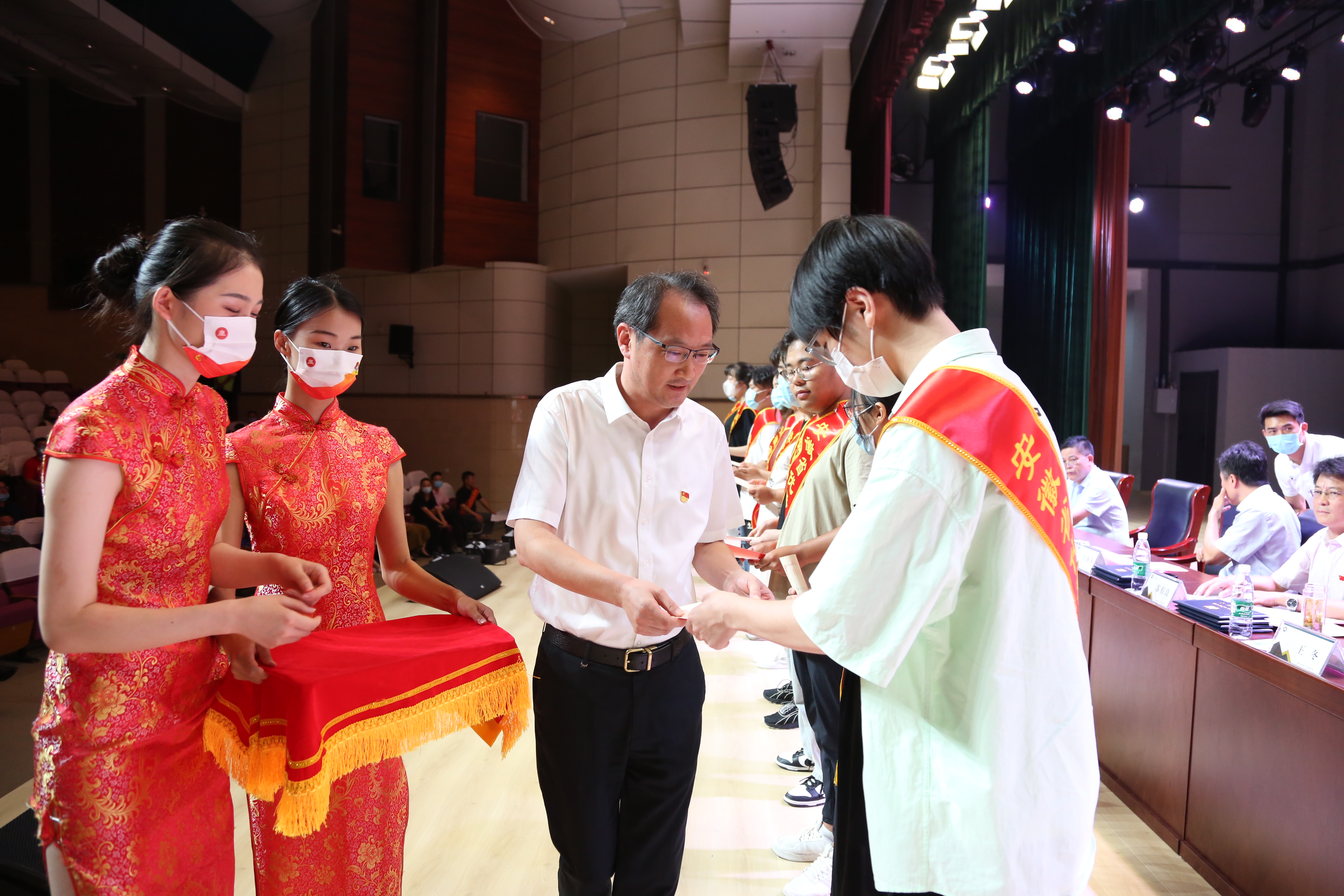许雪峰向获表彰的省级优秀毕业生颁奖。