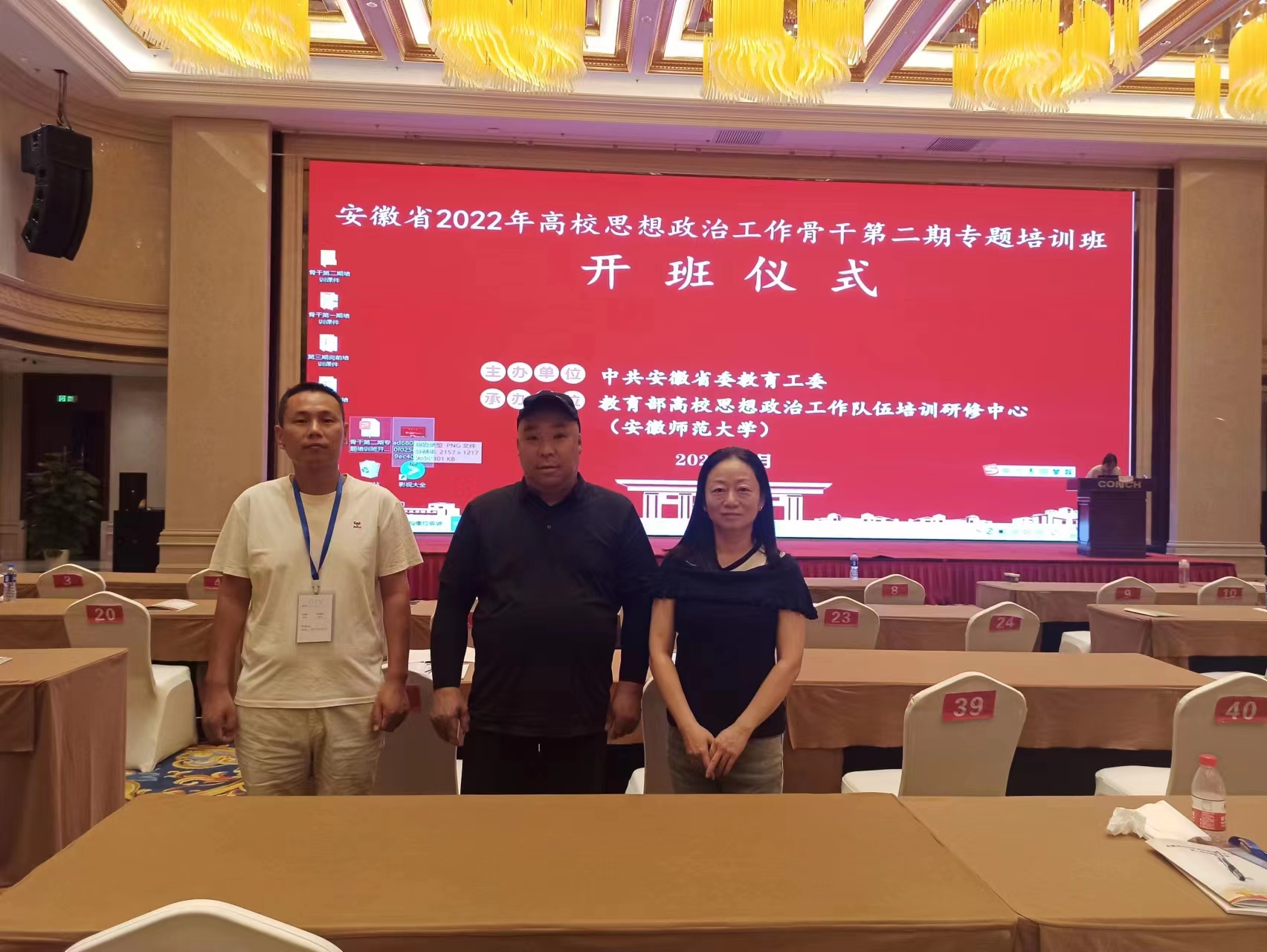 8月9日-12日,安徽省2022年高校思想政治工作骨干第二期专题培训班在芜湖海螺国际会议中心举办。为加强Beat365学工队伍建设,提高学生管理工作水平,学生处选派吴慧明、薛天飞、张飞三位老师参加了本次专题培训。此次培训由教育部高校思想政治工作队伍培训研修中心承办,安徽师范大学马克思主义学院院长姚宏志出席并致辞。来自全省50多家高校120余名高校学生管理工作骨干参加培训。