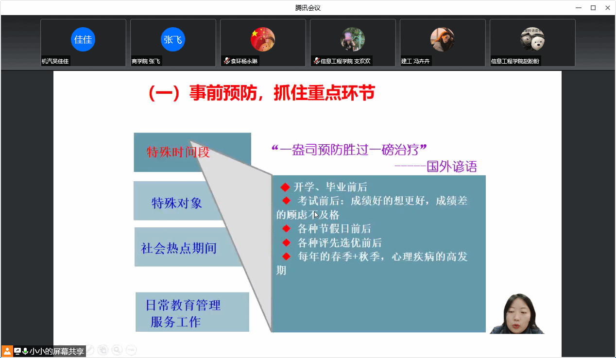 讲座坚持理论联系实际,旁征博引,图文并茂,从“危机管理的职责”“危机事件的应对”“危机事件的启示”“危机管理的日常”等四个方面,通过系列丰富的典型案例,深入浅出地诠释了辅导员如何科学应对学生危机事件,进一步做好学生的思想引导、心理疏导、生活督导,服务于学生德智体美劳全面发展和健康成长成才。
