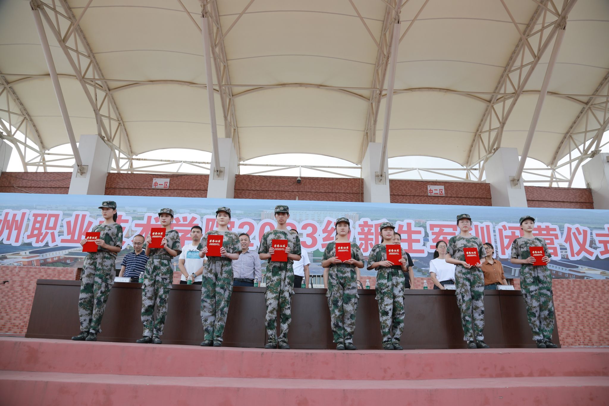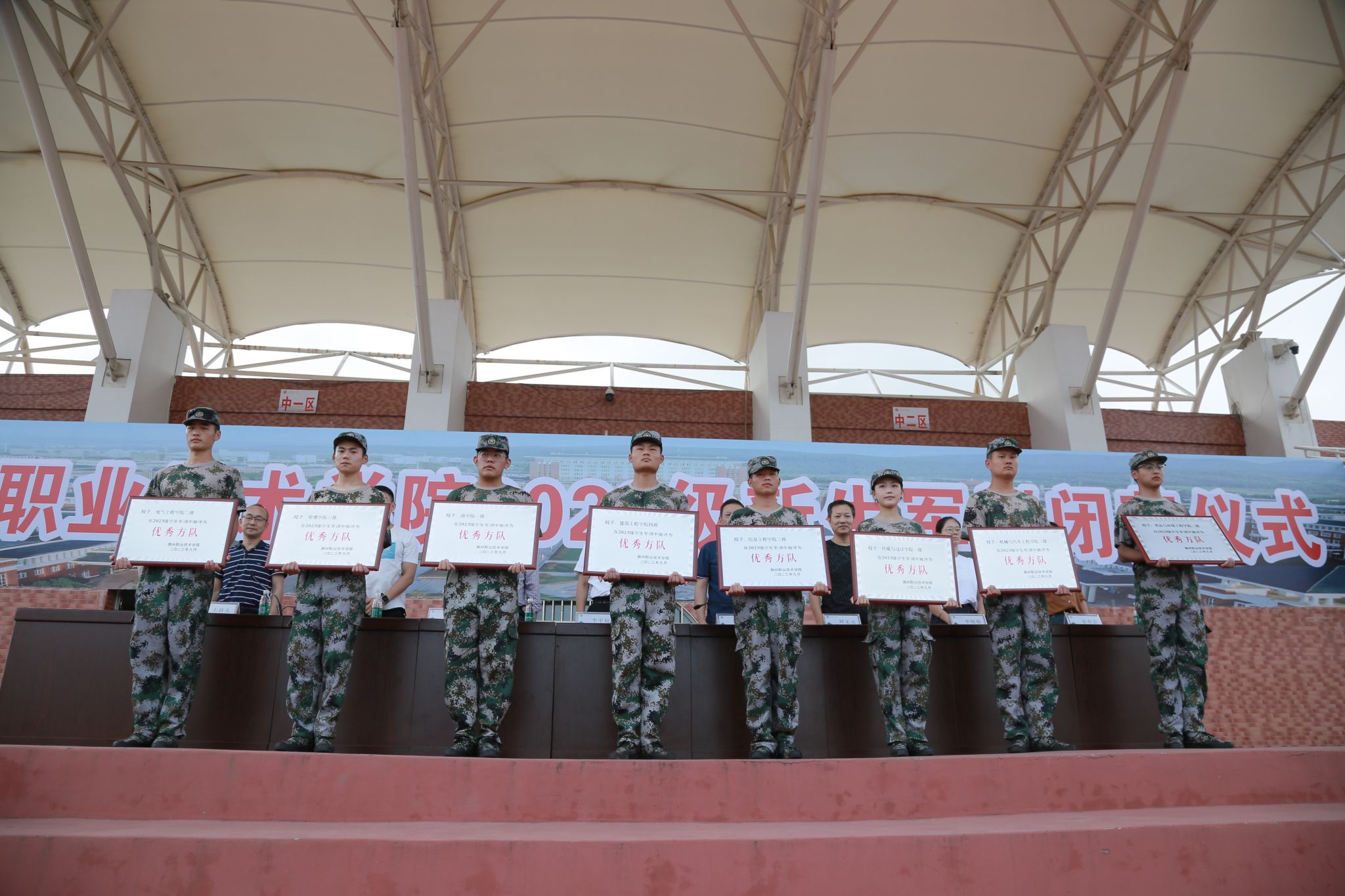 校团委书记甄帅宣读了军训表彰文件。与会领导向获表彰的军训“优秀方队”“优秀学员”进行了颁奖。