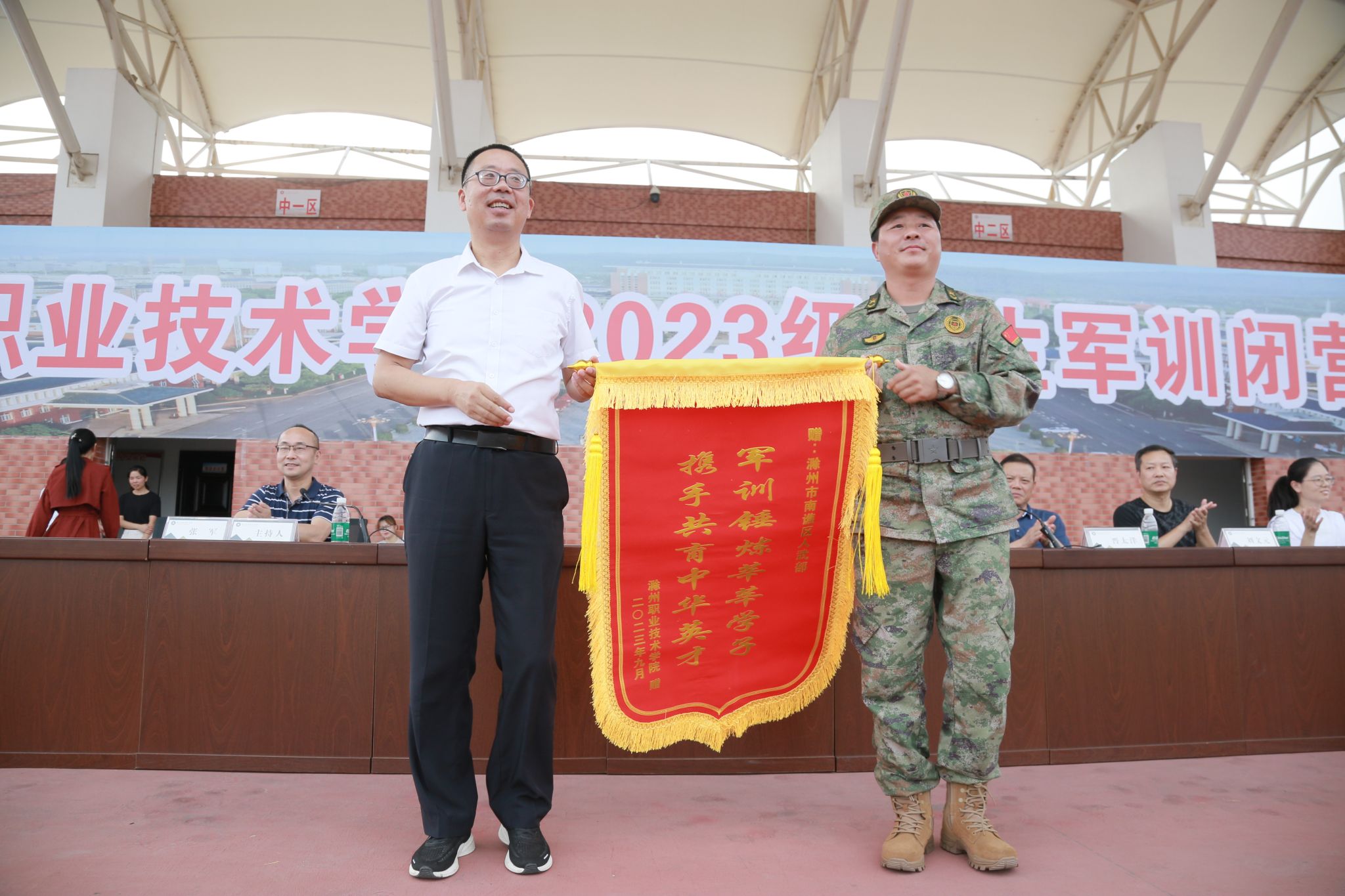 李平权代表学校向承训单位赠送“军训锤炼莘莘学子,携手共育中华英才”锦旗;向连日来辛勤工作的全体军训教官表示诚挚感谢;并宣布“Beat365唯一官方网站2023级新生军训闭营”。