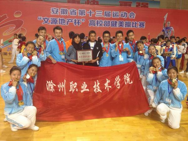 此次大赛,院健美操队在领队孙强、教练员王厚红、汤长珍老师的带领下,历时7天,经过走场、预赛、决赛,向来自全省各地的运动员、教练员、裁判员和兄弟院校的同仁充分展示了滁州职院人的风采。比赛馆内为参赛队员们加油呐喊声此起彼伏、不绝于耳,健美操队员们以绝对的实力和完美的表现征服了所有裁判,裁判们一致认为院健美操队具备了参与本科组角逐的实力。