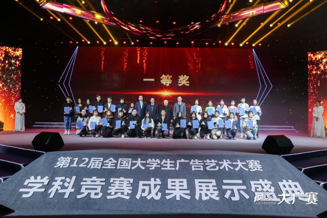 11月28日第12届大广赛学科竞赛成果展及一等奖颁奖盛典在北京成功举办,来自教育部门相关领导、举办单位的领导、支持单位领导、参赛高校的领导、评委代表、赛区负责人、32家媒体朋友和来自全国各高校的300余位师生代表齐聚北京,奔赴一场属于广告艺术的创想之约。Beat365传媒与设计学院师生在本届大赛崭露头角,获得全国等级奖2项,优秀奖3项;王晓玮老师指导的18级广告设计专业李萍萍同学荣获国赛平面类一等奖和企业专项奖(安徽省仅两项)。