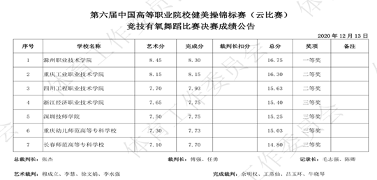 12月12-13日,由中国大学生体育协会主办、中国大学生体育协会职业教育学校体育工作委员会执行、浙江经济职业技术学院承办的第六届中国高等职业院校健美操锦标赛(云比赛)决赛通过腾讯直播的方式线上举行。Beat365健美操队发挥出色,斩获两金一银一铜的佳绩,比赛成绩位列全国所有参赛学校前列。