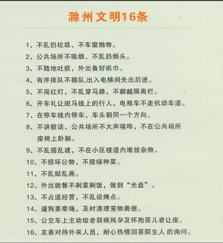 社会主义核心价值观、滁州市市民公约、滁州文明16条