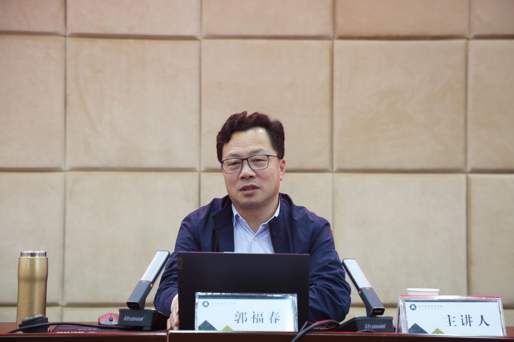 培训中,郭福春以《在提高服务产业贡献度中打造新双高》为题,紧密结合高职院校工作实际,从“政策怎么走”“产业怎么看”“领导怎么讲”“‘双高’怎么建”“学校怎么办”五个维度深入,围绕近年来职业教育发展的主要政策、新质生产力与高质量发展、条件基础的支撑度、建设措施目标的可达成度、政策机制的保障度、成果成效的贡献度等方面系统地阐述了在提高服务产业贡献度中打造“新双高”的政策背景、方法路径和实践方案。并在报告中对课程实施报告、精品课程在线建设案例、专业群建设方案等申报材料的具体撰写予以专业、详尽的指导。