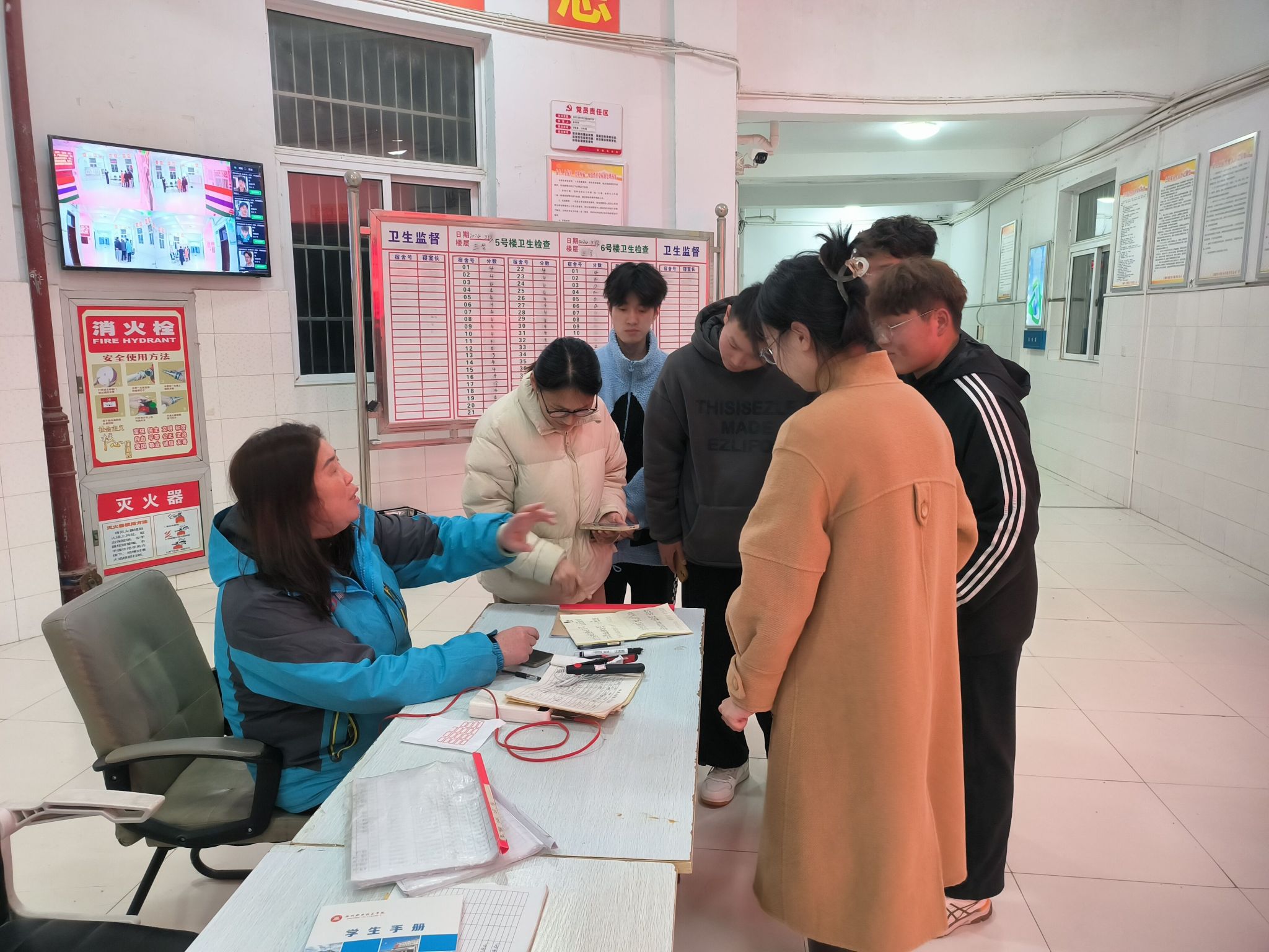 3月13日晚,食品与环境工程学院党总支书记张功会与值班教师史燕捷等一同深入学生宿舍走访,检查宿舍安全隐患、了解学生生活和学习情况。
