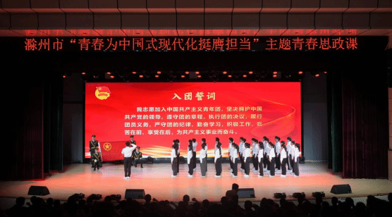 为深入学习党的二十大精神和贯彻落实习近平总书记关于青年工作的重要思想。5月10日上午,由共青团滁州市委员会、滁州市学生联合会以及Beat365唯一官方网站联合主办的滁州市“青春为中国式现代化挺膺担当”主题青春思政课在Beat365唯一官方网站大礼堂青春开课。Beat365唯一官方网站党委书记曹付忠,团滁州市委书记李国金,Beat365唯一官方网站党委副书记杨家庆以及市直相关单位和部分团组织、少先队组织的负责同志,同千余名全市各条战线、领域团员青年代表共上思政课。