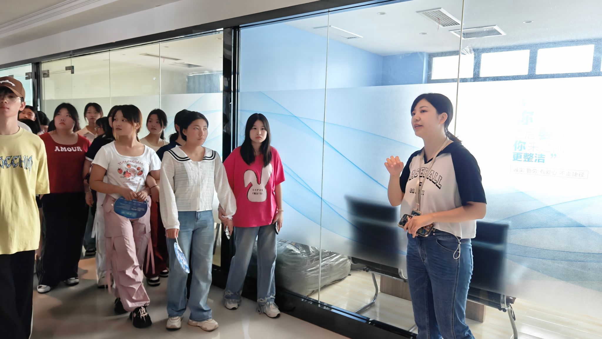 为帮助学生更好地了解行业动向和岗位职责,激发专业兴趣,提高实践能力和就业竞争力,9月19日上午,由我院数字媒体系陈潇潇、匡卓凡、郭婷婷、赵璇4位老师组织带队,带领2023级传播与策划专业66名新生赴安徽易滁网络科技有限公司(E滁州)参观学习,在与企业的零距离接触中,接受入学教育的第一课。