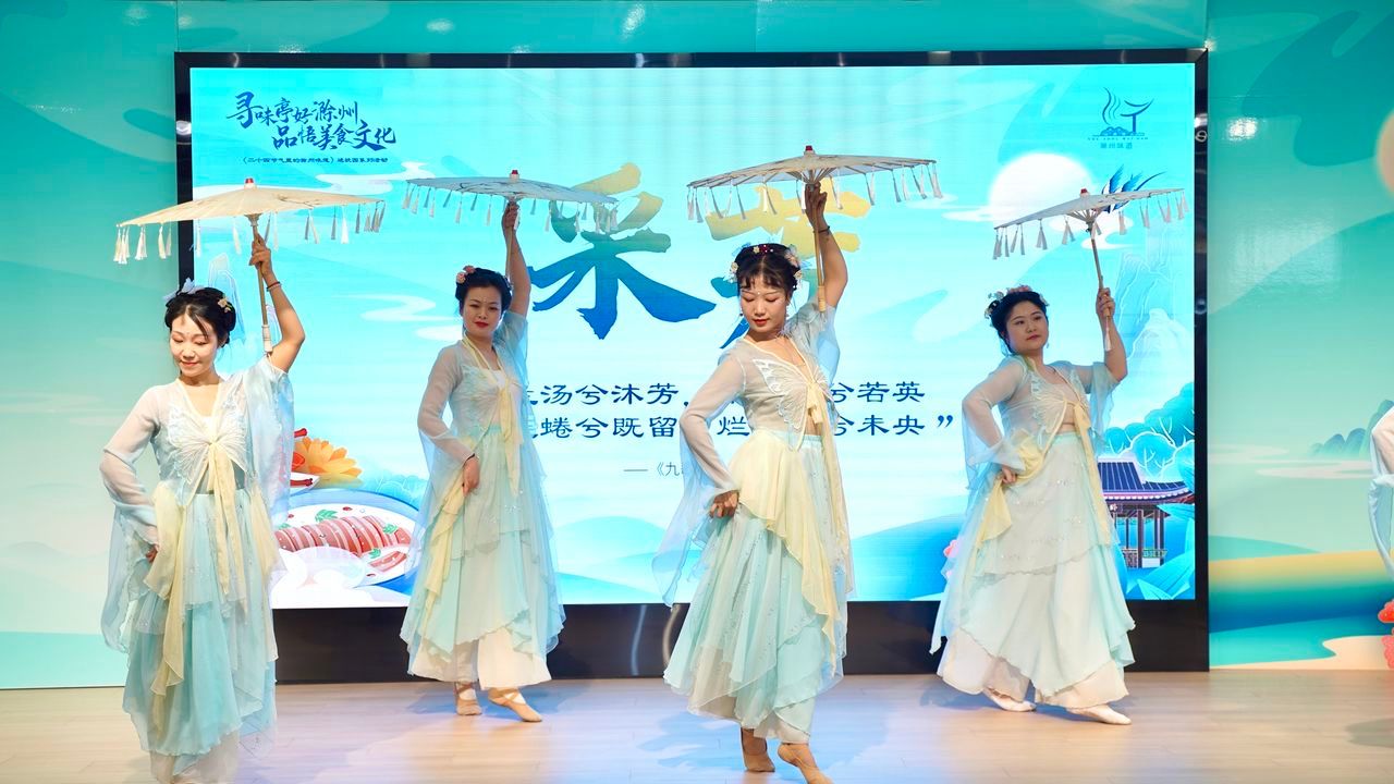 活动现场节目精彩纷呈,互动环节丰富有趣。舞蹈表演《采芳》,配乐诗朗诵《惊蛰》展现惊蛰节气滁州深厚的文化底蕴。专家漫谈沙龙围绕“老手艺释放新动能 | 从经典传统美食看优秀传统文化”这一主题展开对话。嘉宾们共同向大家讲述了传统美食背后的故事,分享了创作的思路和技巧,让在场的学生们受益匪浅。活动现场还准备了池河雪片糕、琅琊酥糖、秦栏卤鹅等12道经典滁州美食,供大家品尝,现场参与者们大快朵颐,纷纷为滁州味道点赞。