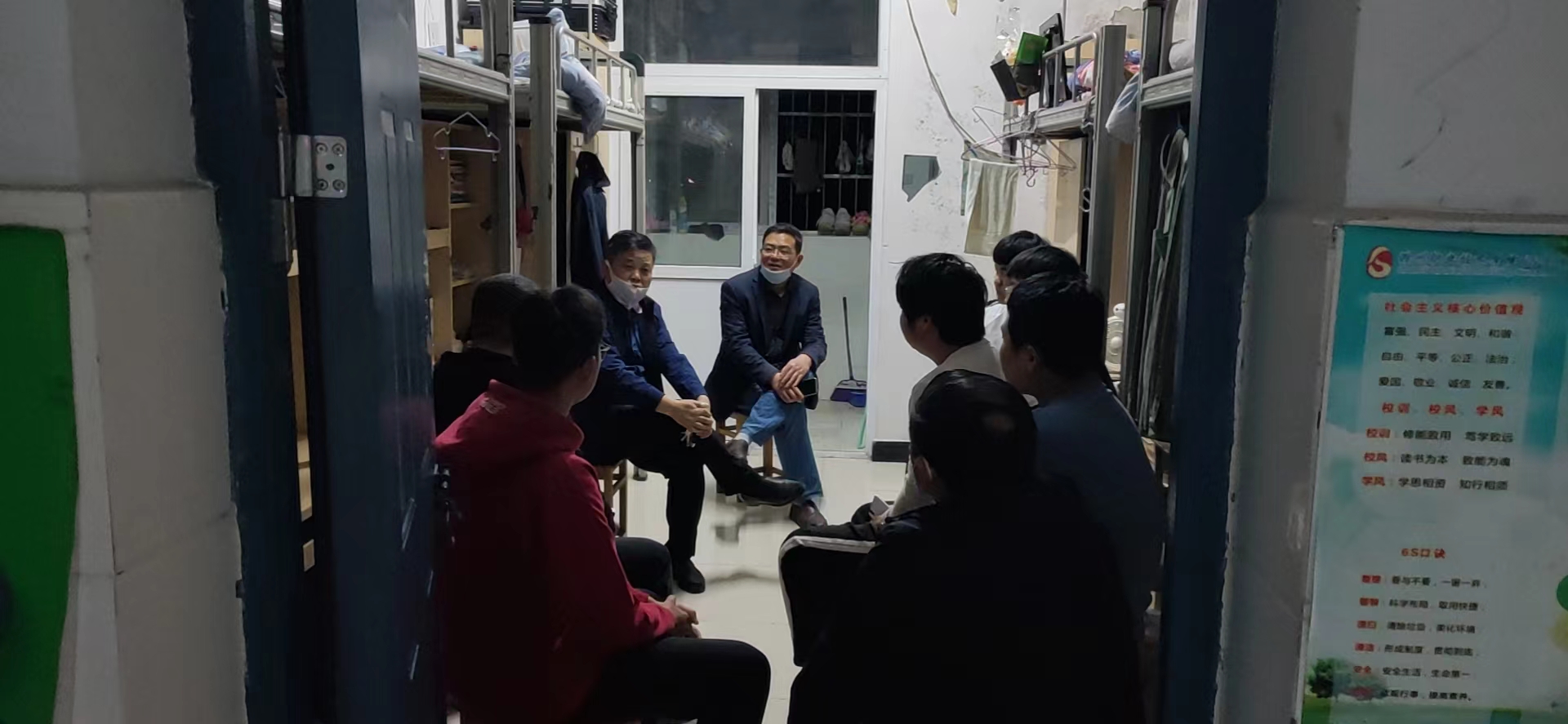 2022年4月15日晚,校党委委员、纪委书记杨华龙,图书馆馆长苏和堂,互联网学院党组织负责人马来军,电气工程学院副院长燕相松等一行人走访宿舍区域,到宿舍楼进行现场查岗巡视。