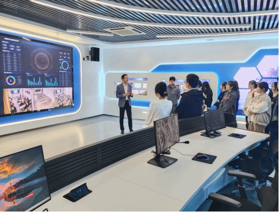 会前,师生代表一起参观学校智慧校园综合指挥中心,了解目前学校智慧校园整体建设和推进情况。