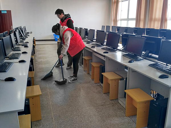 本次打扫分三人一组,一组负责一间机房,各组人员将地面上的垃圾一一捡起,对综合楼五楼的机房进行清扫。同学们打扫机房卫生,擦拭电脑设备和桌椅,检查鼠标和键盘有无缺损,经过一个小时左右的清理,机房卫生恢复了整洁干净的面貌,在同学们的齐心合力下,圆满完成了机房清理工作,为他人和自己营造一个干净、整洁的学习环境。