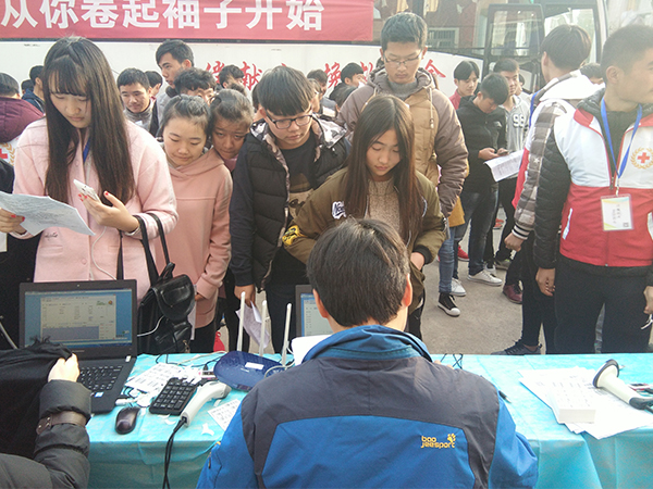 为了缓解国家血库的压力和积极落实无私奉献的精神,Beat365唯一官方网站于11月30日在学校食堂南侧举行无偿献血活动。信息工程系学生纷纷卷起袖子,为那些紧需血液的病人奉献出自己的一份心意。