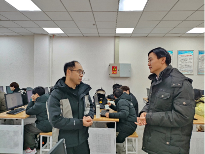 2024年12月24日,两校教师在我院软件开发实训室(Z505)为24级计算机科学技术(专升本)班开展了《数据结构》课程互动教学。安徽科技学院网络安全系主任王传安老师与我院魏光杏老师同上一门课,为做好24级计算机科学与技术(专升本)班的教育教学提供了保障。