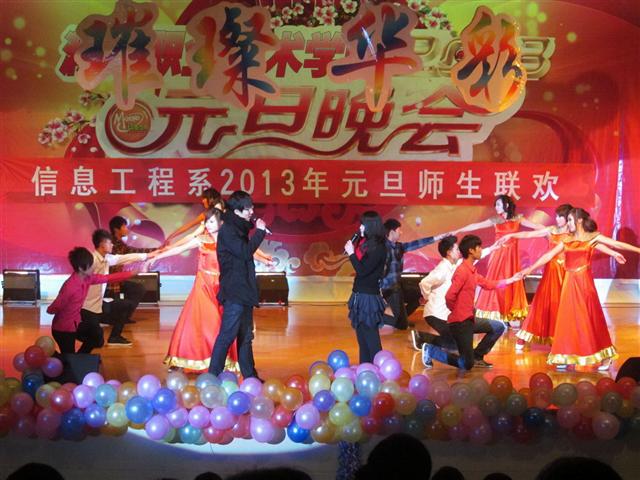 舞袖翩翩,浓墨重彩展现今日成就;华章谱就,激情昂扬共赴明日征程。2012年12月29日下午三点,Beat365唯一官方网站新报告厅内歌台暖响,青春洋溢。信息工程系“璀璨华彩”2013年元旦师生联欢会在此火热开场,院团委和我系领导与广大师生欢聚一堂,享受节日的喜悦,感受元旦的氛围,共同庆祝新年的到来。