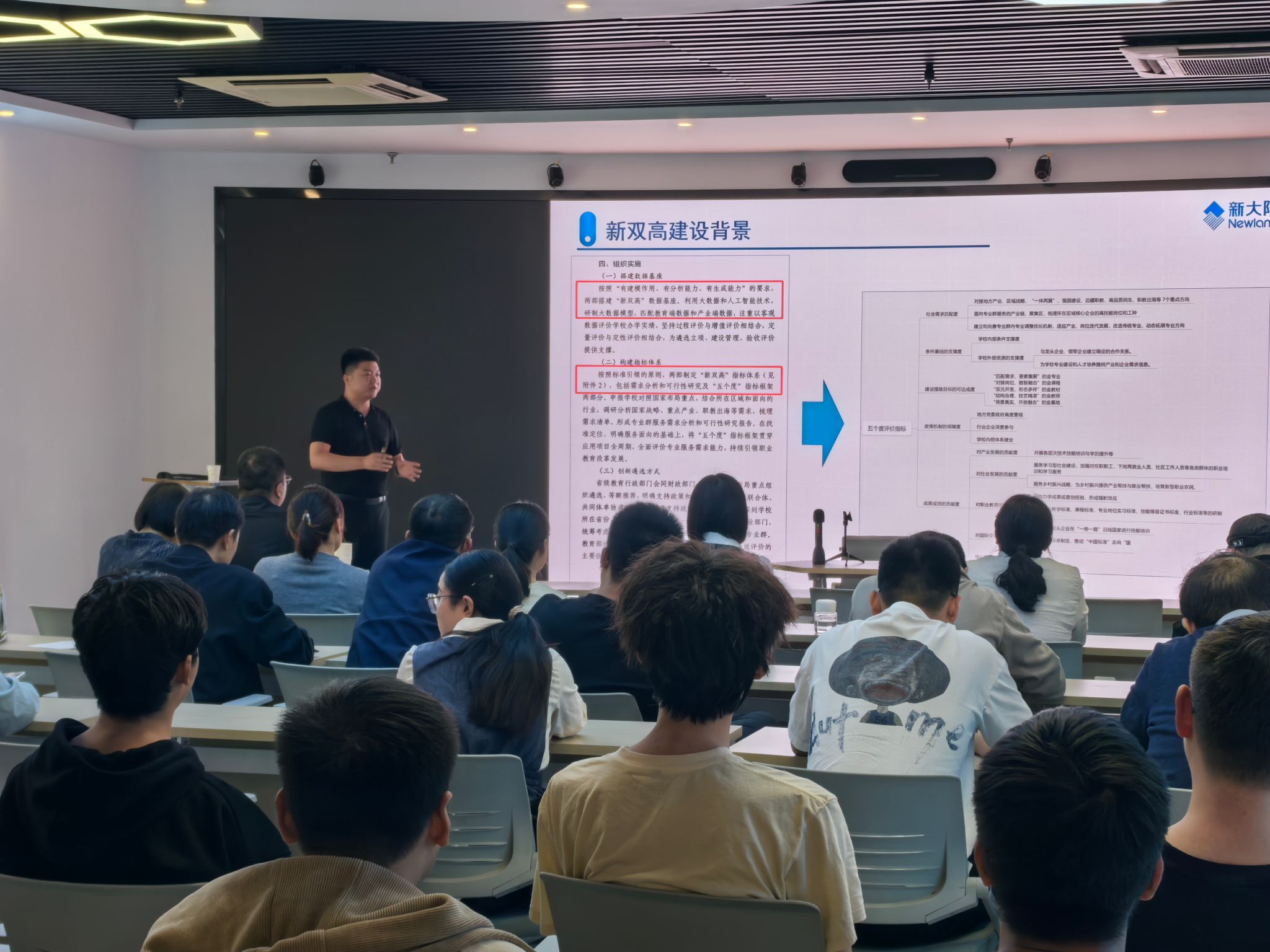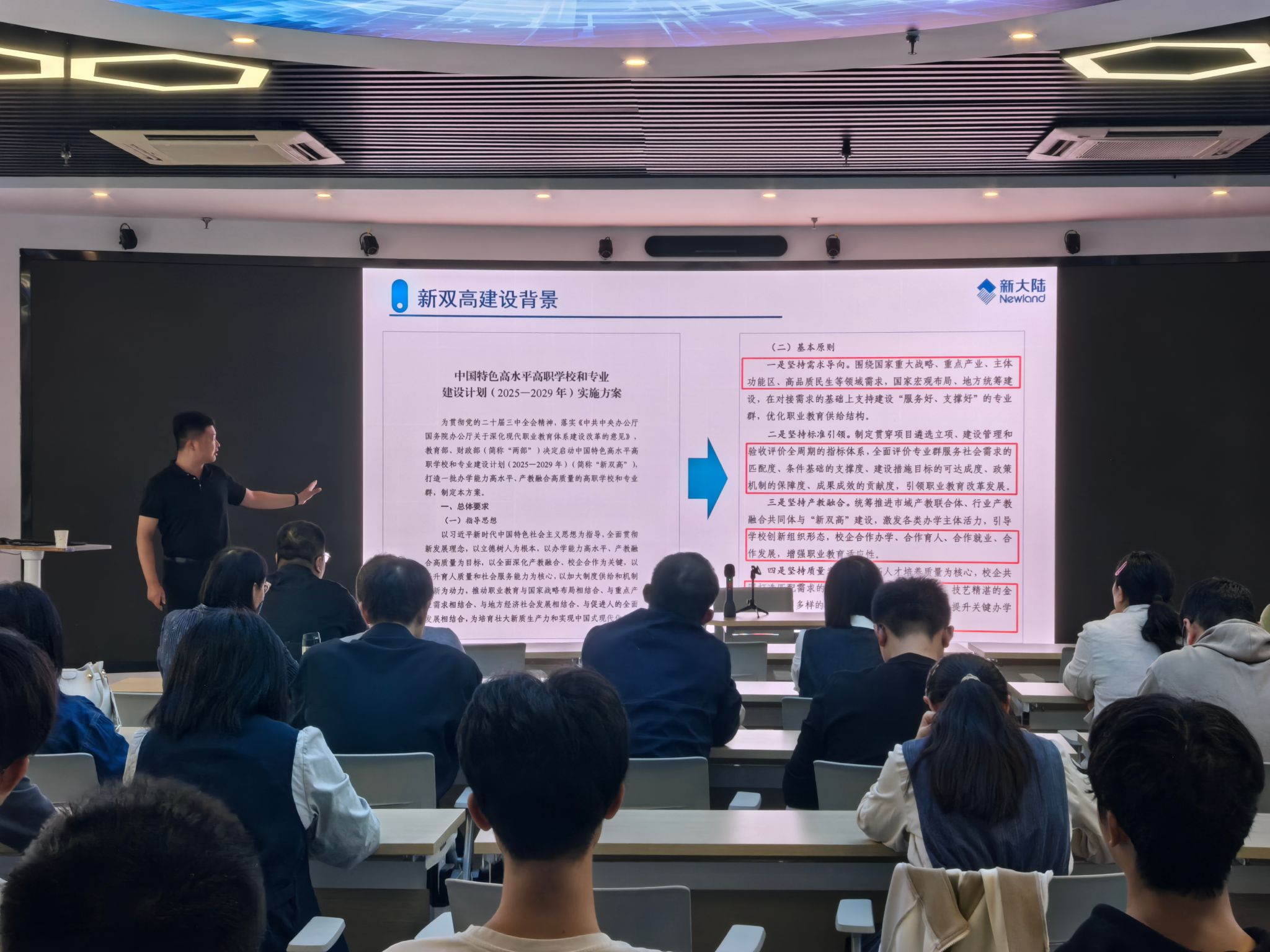 为大力发展现代化高等职业教育,探索新型校企专业共建、合作办学模式,推动专业、课程建设高质量发展,2024年10月16日,信息工程学院邀请北京新大陆时代科技有限公司的马达总监,在虚拟现实展厅开展“大师进校园”讲座活动,在人才培养、产业学院建设、校企合作、课程建设、技术服务等方面展开探讨。