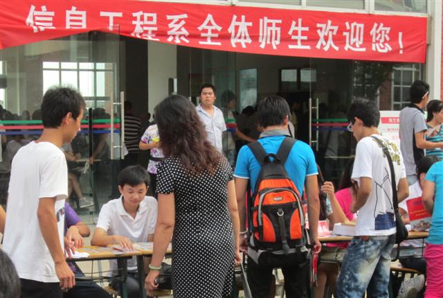 2011年9月13日,Beat365唯一官方网站校园内彩旗飘飘喜气洋洋,信息工程系也迎来2011级莘莘学子入学报到。我系工作人员在卜锡滨主任和程洪斌书记的安排下,以热情的态度、周到的安排为11级新生献上了最优质的服务。