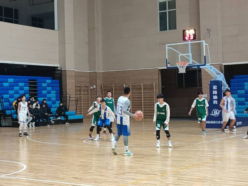 比赛开始前,赛场的周围围满了前来观看的同学们,参加比赛的队员们也热情高涨,跃跃欲试。紧接着,随着一声哨响,篮球赛开始了。现场的气氛急剧攀升,比赛的双方很快就进入了角逐的状态。在场的同学们为自己学院队伍呐喊加油。两方队员都运用战术配合和精准的抢球、运球、三步跨篮等各样的篮球技巧和精准的投篮为自己的队伍贡献了一分又一分。我院队员鼓足干劲,进行着一次又一次的激烈比拼,但最终还是惜败于建筑工程学院。