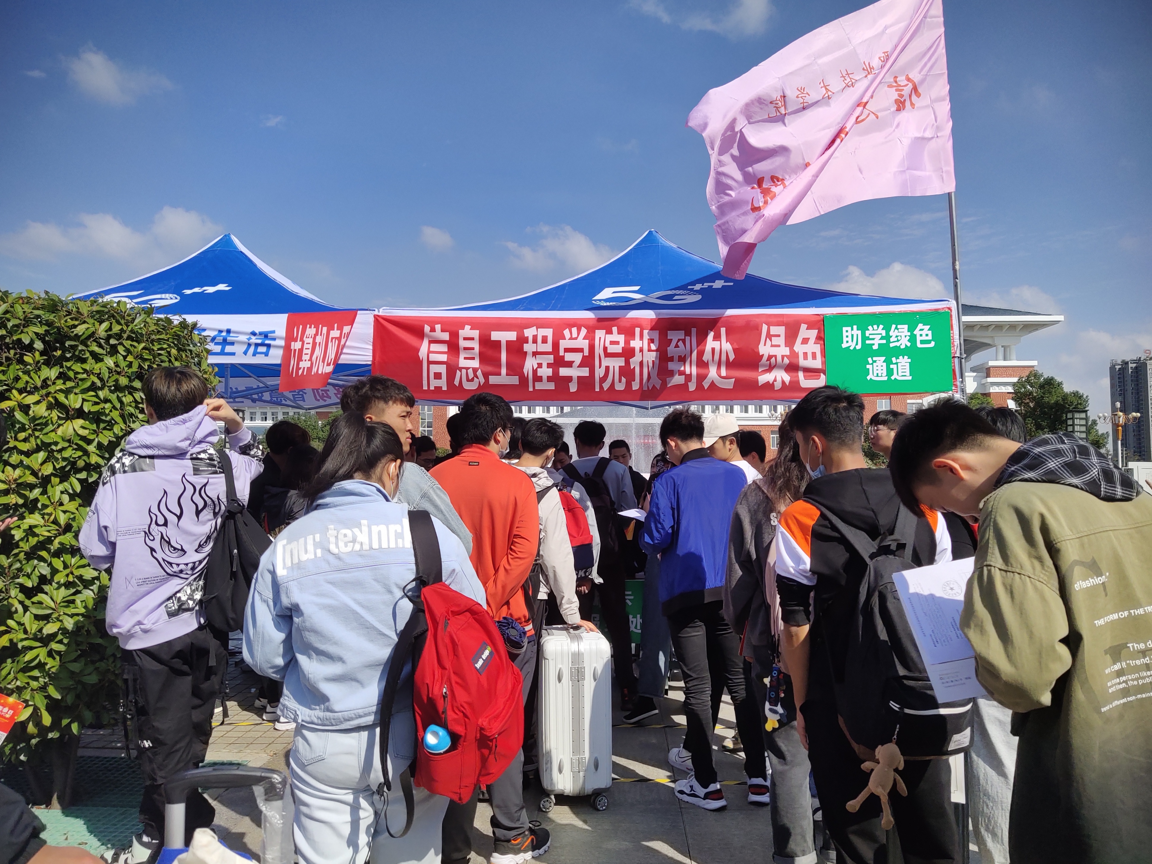 金秋送爽,丹桂飘香。10月12日,在这硕果累累的季节里,Beat365唯一官方网站2020级迎新工作正式拉开帷幕,信息工程学院400多名新生错峰进入校园,有序拉开各项开学季活动。学院迎新氛围浓厚,志愿者热情高涨,大家都严阵以待迎接来自四面八方的莘莘学子。