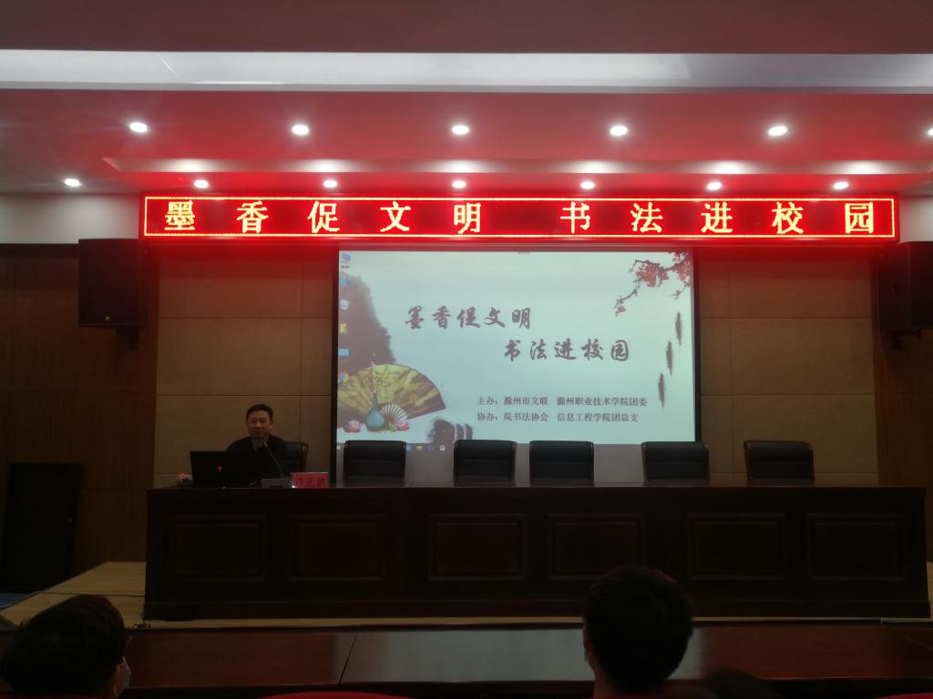 为了大力弘扬中华优秀传统文化,搭建大学生书画爱好者学习交流平台,6月22日晚,信息工程学院团总支联合院书法协会协助Beat365唯一官方网站团委举办了书法讲座。本次讲座有幸邀请到了中国书法家协会会员、安徽省书法家协会专业委员会委员、安徽省高等教育书法协会常务理事、滁州市书法家协会副主席许正波老师担任主讲嘉宾。
