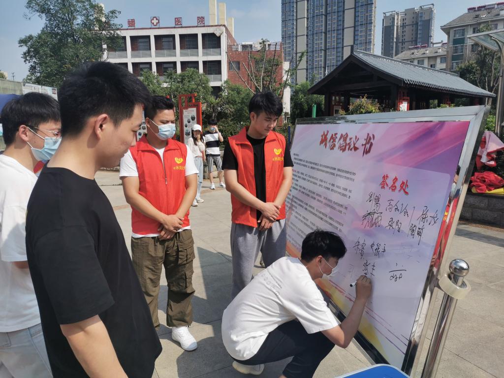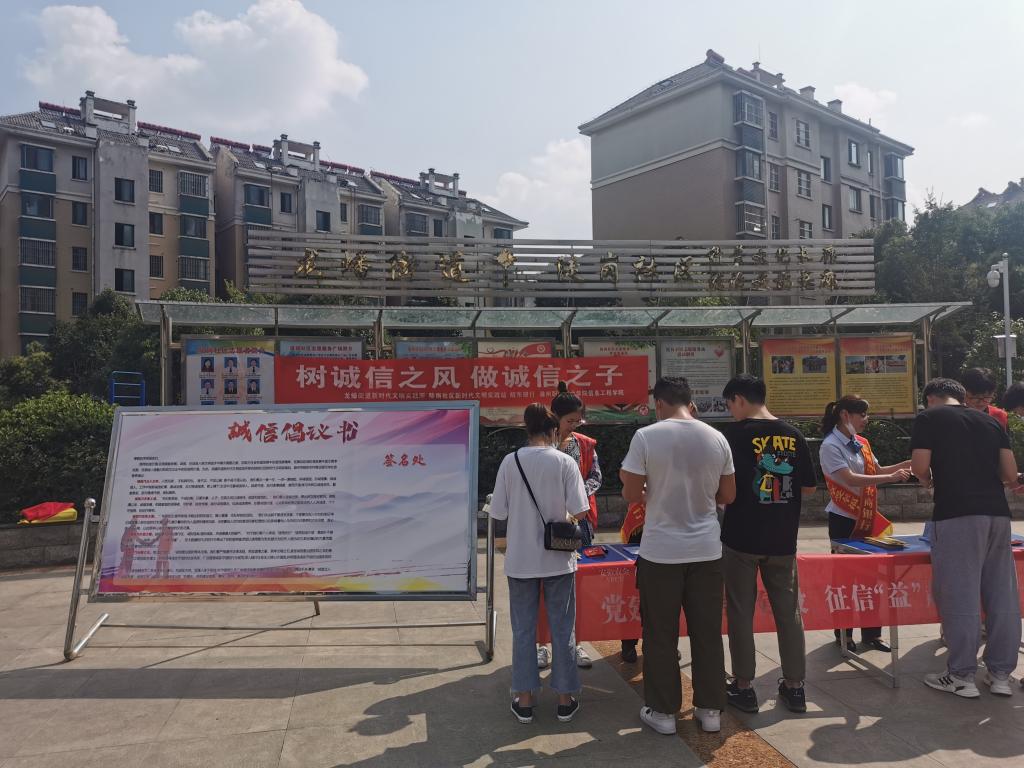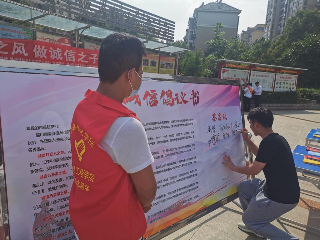 为进一步增强大学生诚信意识,构建校园诚信文化,6月24日,信息工程学院学生志愿者在老师的带领下,去到陡岗社区与志愿者们一起参与开展“塑造诚信大学生,构建诚信校园”的主题宣传活动,旨在引导大家树诚信学风、做诚信学子。