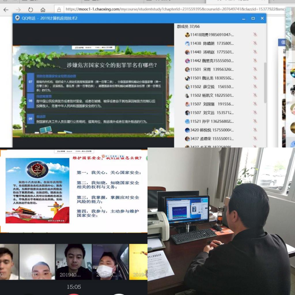 继我院各班辅导员组织学生错峰观看完“千万学生同上一堂国家安全教育课”,为了进一步教育引导广大学生牢固树立国家安全意识,自觉维护国家安全,我院各班级依托QQ群、腾讯会议等网络平台,陆续开展了“国家安全教育”线上特别主题班会活动。