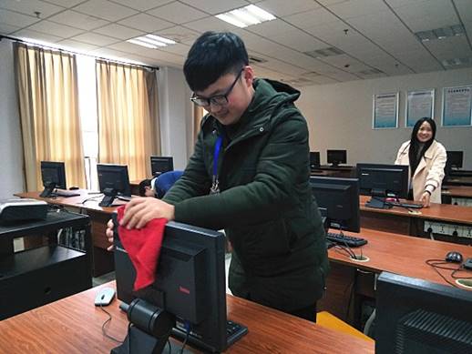 活动中,我系学干们秉着一丝不苟的态度,分工合作,对我系综合楼所有机房的地面、桌面、桌椅进行打扫和整理,展现出积极向上、斗志昂扬、团结奋进的良好状态。在大家的配合默契下,经过一个多小时的清理整顿,机房焕然一新。