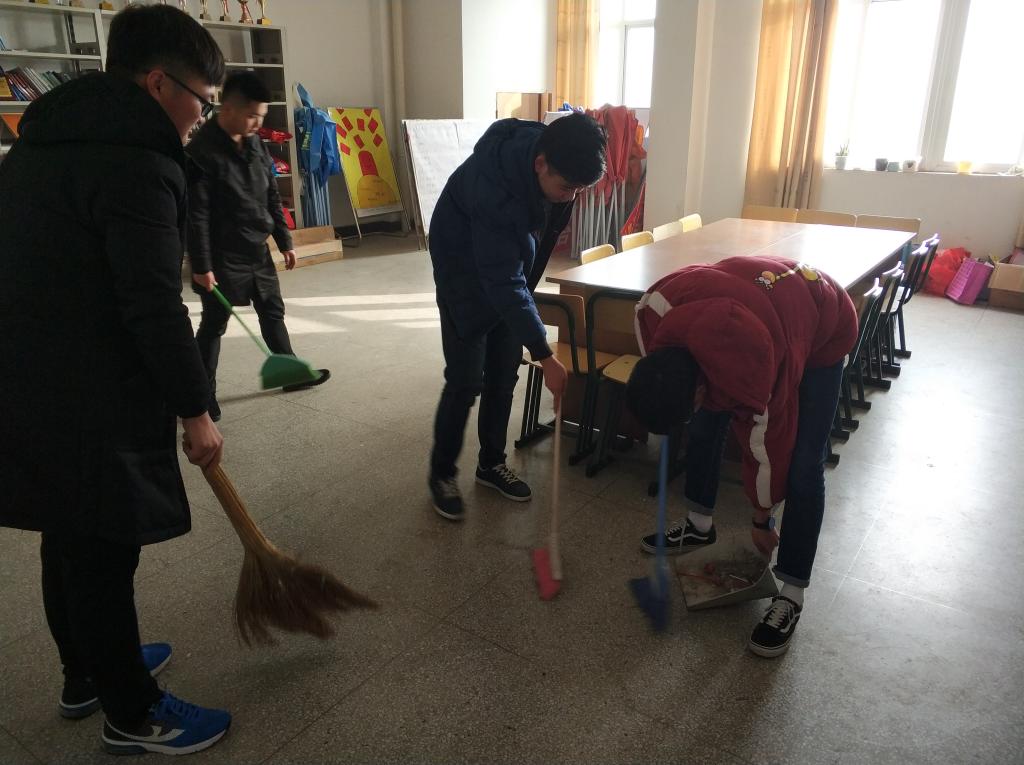 针对检查过程中发现的卫生死角,团学干们一起动手进行清理清扫,同时认真排查每个教室的门窗、空调和多媒体设备等可能存在的安全隐患,确保假期校园安全和稳定。