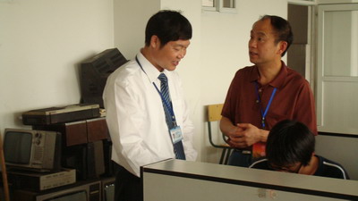 29日下午,评估专家在电子电工实验室考察我院丁文权老师的实训课