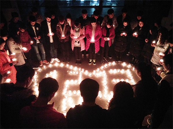 2016年12月13日为南京大屠杀死难者国家公祭日,信息工程系全体团总支成员晚上7点在学院二号教学楼大厅举行纪念南京大屠杀公祭活动。