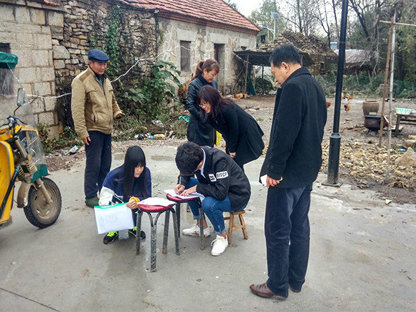 在赵老师的分配下,我系学生分为了六组,三人为一组。每组均由扶贫办一位领导带领,分别前往凤阳县不同村庄开展调查。即使天气恶劣,但扶贫小组们依然坚持。天空下着淅淅沥沥的雨,地上踩着泥泞的路,扶贫小组们没有半句怨言,坚持调查活动的继续。在调查活动中,了解到那些贫困户的生活,让我们真正体会到我们现在的生活来之不易。