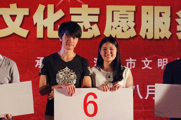 8月10日晚,滁州市人民广场上响起欢快的乐曲,阵阵喝彩飘荡于攒动的人群之间,由中共滁州市委宣传部、市文化广电新闻出版局主办,市文化馆和安徽中远文化传媒有限公司承办的“中国梦·出彩滁州人”人民广场周周演活动又一次开演。信息工程系2014年暑期社会实践文艺小分队张玲、萧翰两名同学参加了本次演出,为市民们倾情献上了一曲梦幻浪漫的经典情歌《你把我灌醉》,充分展示了我院大学生优秀的音乐才华。