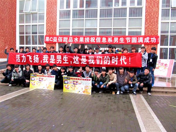 2014年3月12日,信息工程系男生节第三季如约而至,系学生会在当日举办了热闹的开幕签名仪式,信息系男生专属活动拉开帷幕。开幕式吸引了来往众多同学的眼球,男生们纷纷拿起笔在“活力飞扬,我是男生,这是我们的时代!”条幅上签名留念。