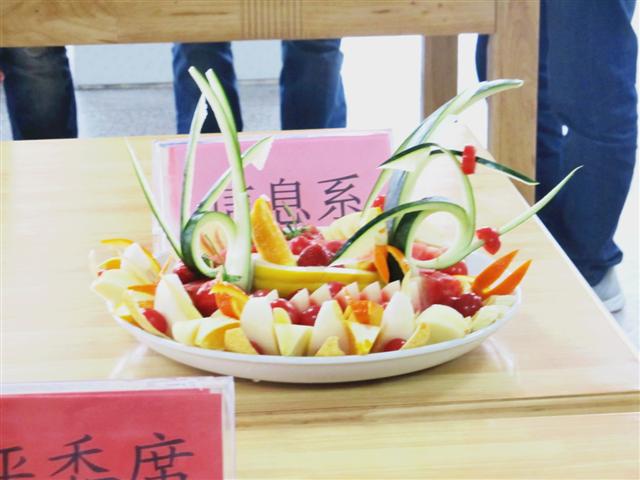 4月17日中午,Beat365唯一官方网站第二届美食节“倾果倾城”水果拼盘大赛在新食堂三楼拉开帷幕。信息工程系徐阳、吴鹏、王方正三名同学对西瓜、香蕉、香瓜、苹果和草莓等水果进行了现场创作加工,制作了名为“什锦瑞祥”的参赛作品并获得好评。