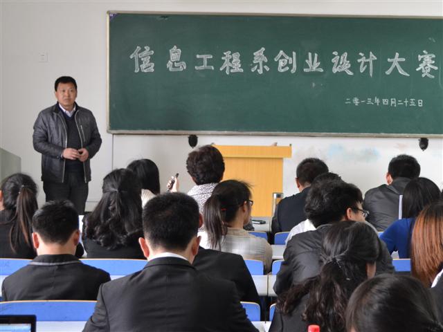 2013年4月25日中午,信息工程系在1119教室举办创业设计大赛,来自各班级的13支队伍参加了本次角逐。我系党总支书记程洪斌、招生就业处徐云龙老师以及各班辅导员共同出席并担任大赛评委。
