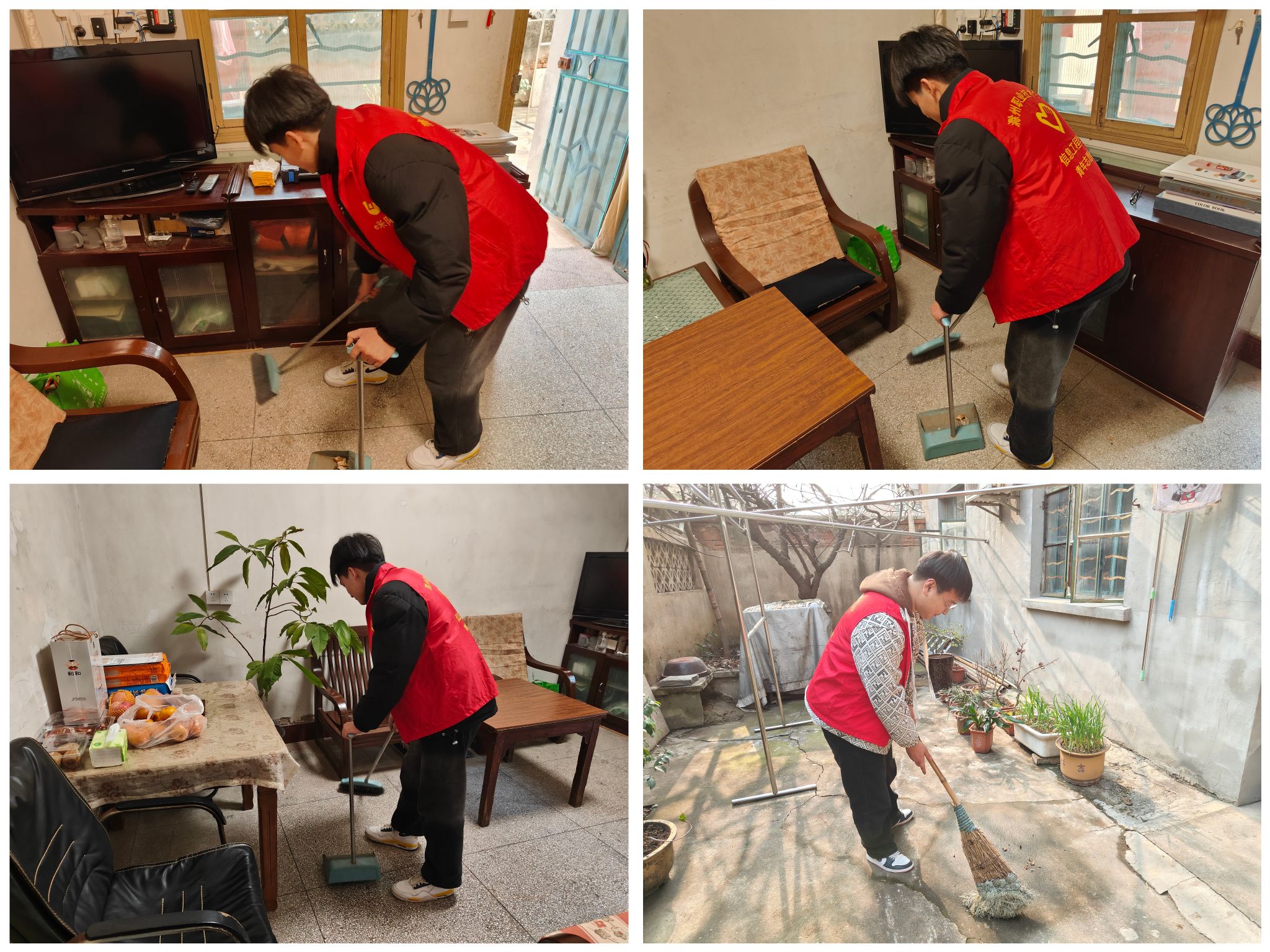 志愿者分成四队,在社区工作人员的带领下,志愿者为空巢老人们送上准备好的牛奶、面包慰问品。交谈过程中,志愿者们细致地询问老人们的身体健康、居住条件、生活需求等方面的情况,并为老人们科普生活小知识,老人们也和志愿者们分享自己的故事,现场其乐融融。同时,志愿者们积极帮助有需要的老人整理内务,打扫卫生,清理家居杂物等,用实际行动拉近了与老人的距离。
