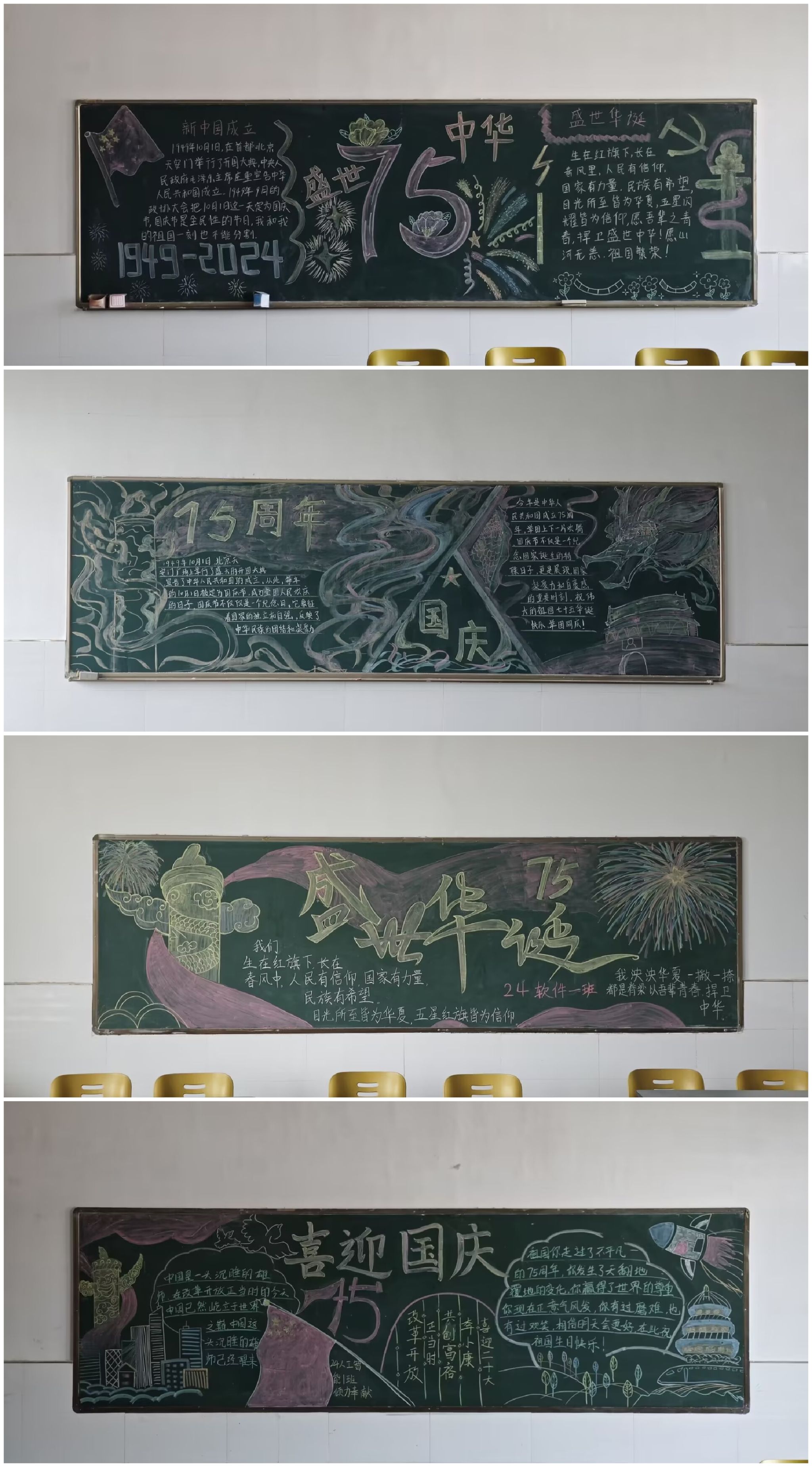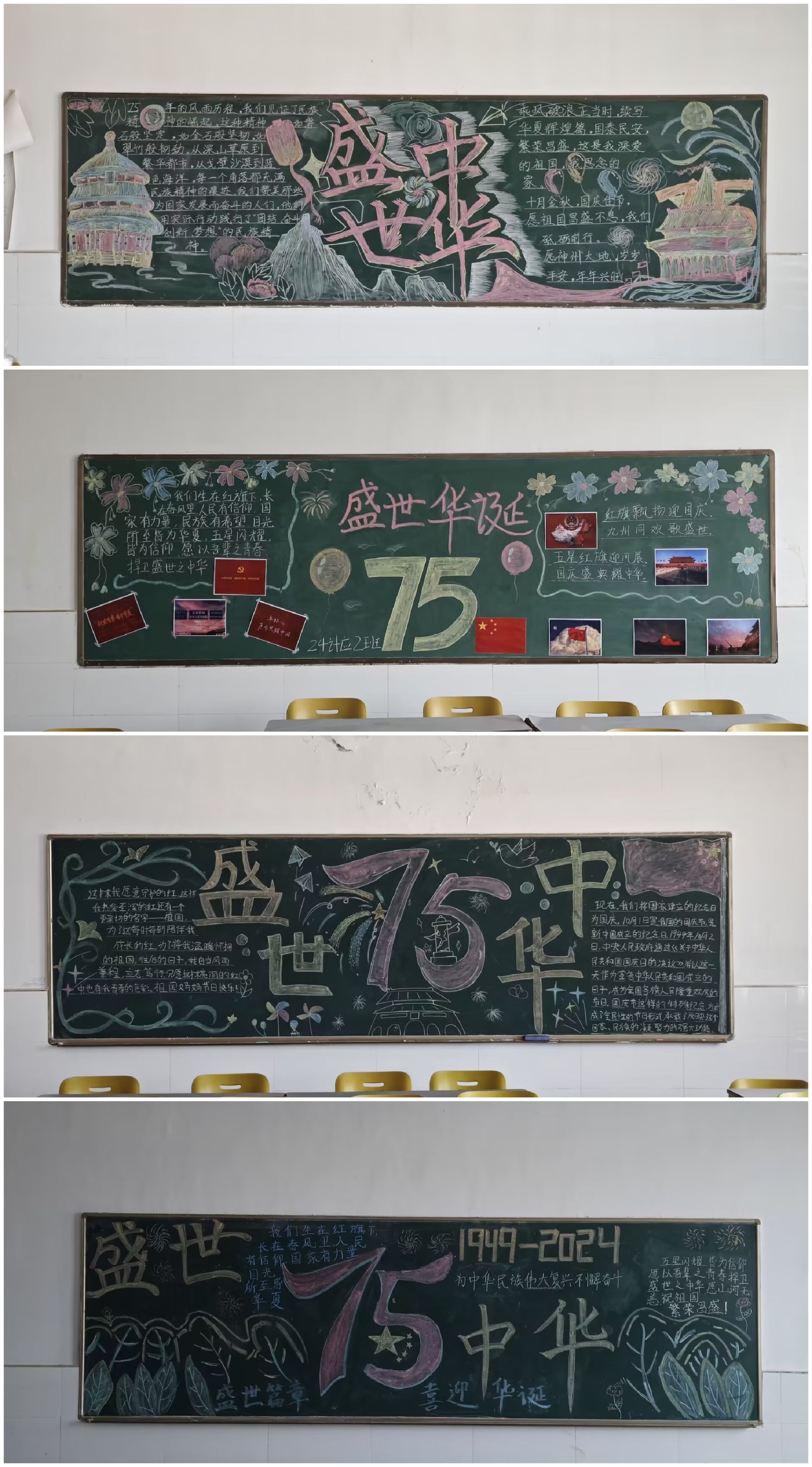 为庆祝新中国成立75周年,加强对学生的爱国主义教育,增强浓厚氛围,我开展了以“欢度国庆·盛世中华”为主题的班级黑板报评比活动。9月26日下午,学生会对各教室的黑板报进行了检查评比。