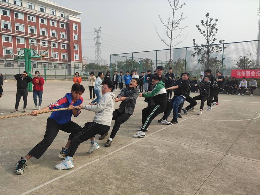 随着裁判员的那一声口哨声,比赛开始,各院代表队都显示出最强的比赛阵容。我院代表队牟足了劲头,紧握着绳子的另一端,进行着一场艰难的比赛。与此同时全场的同学都热情高涨,不断地发出阵阵的呐喊声!我院代表队用那紧凑、规律的节奏一阵阵往后拉,终于打破了对方的平衡点,赢得了此次比赛。最后,我院代表队士气大涨,以一种所向披靡的姿态赢得了校拔河比赛的第一名。