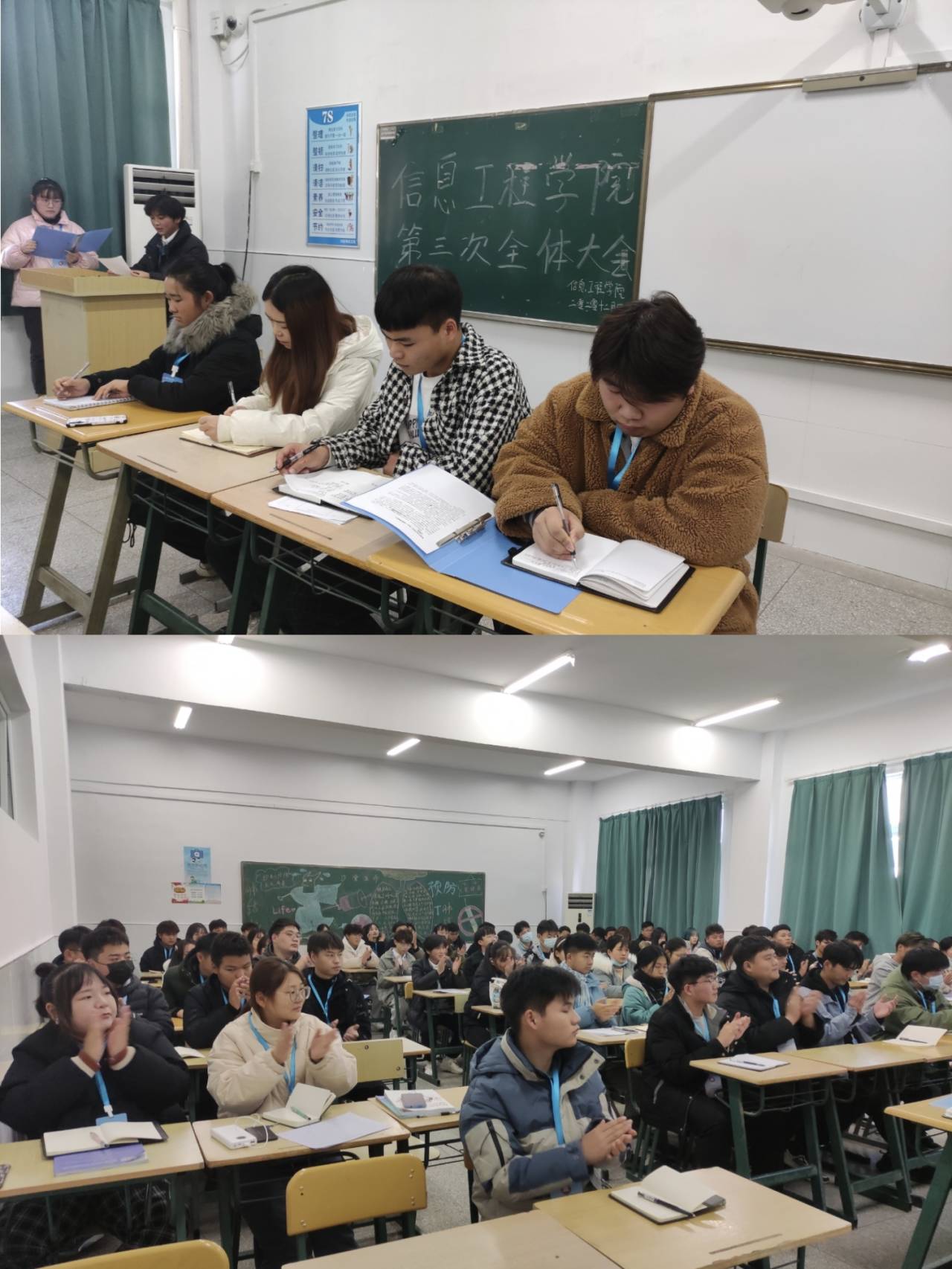 为有序推进学院发展,落实学生会各部门工作,提高各部门办事效率。信息工程学院学生会于12月4日中午在2506教室举行了第三次全体大会。团总支负责老师朱睿、19级全体学干及20级全体干事参加此次会议。