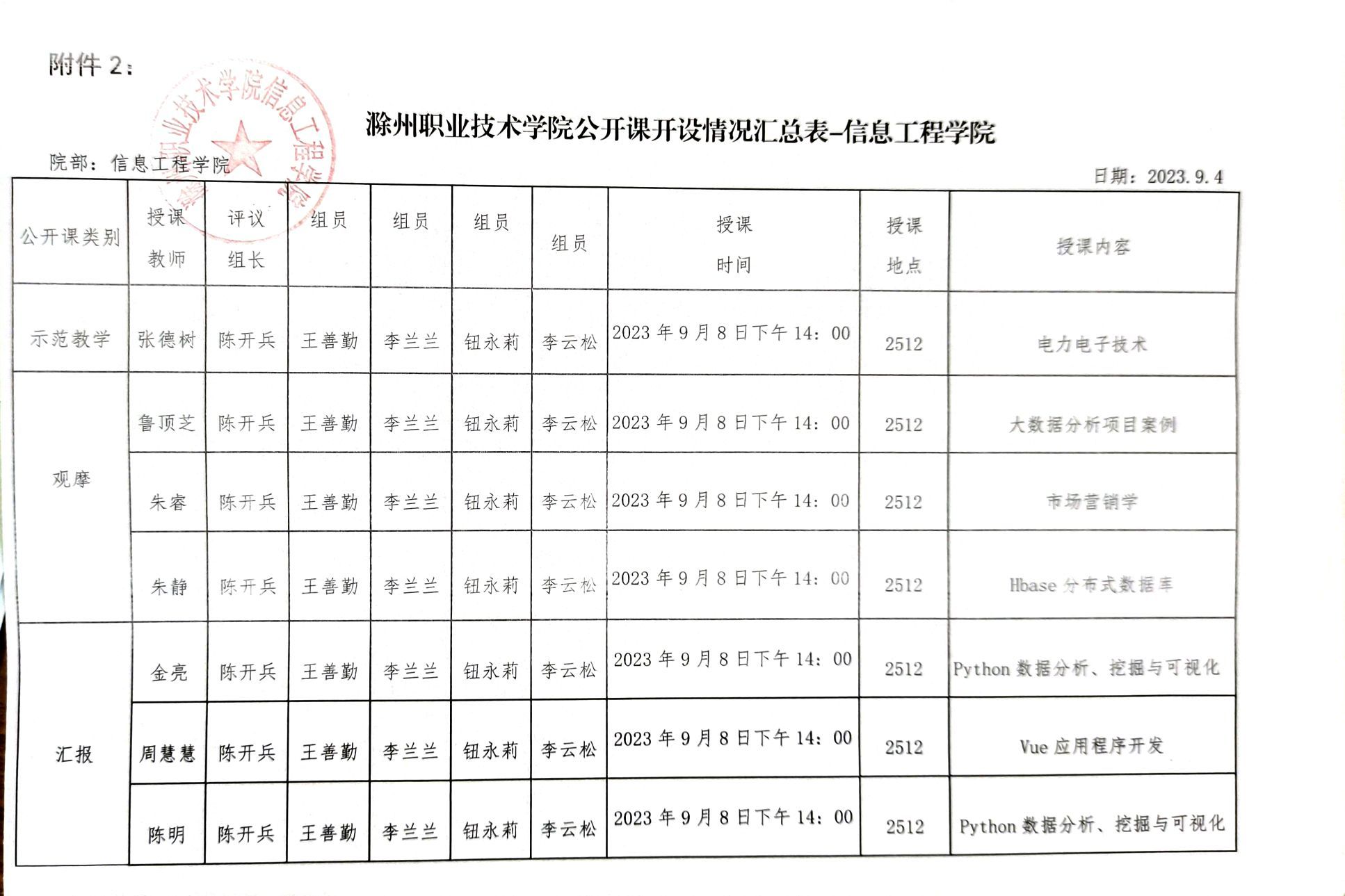 2023年Beat365唯一官方网站信息工程学院公开课开设情况公示