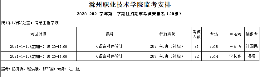 1月10日周日公共课考试安排见附件2