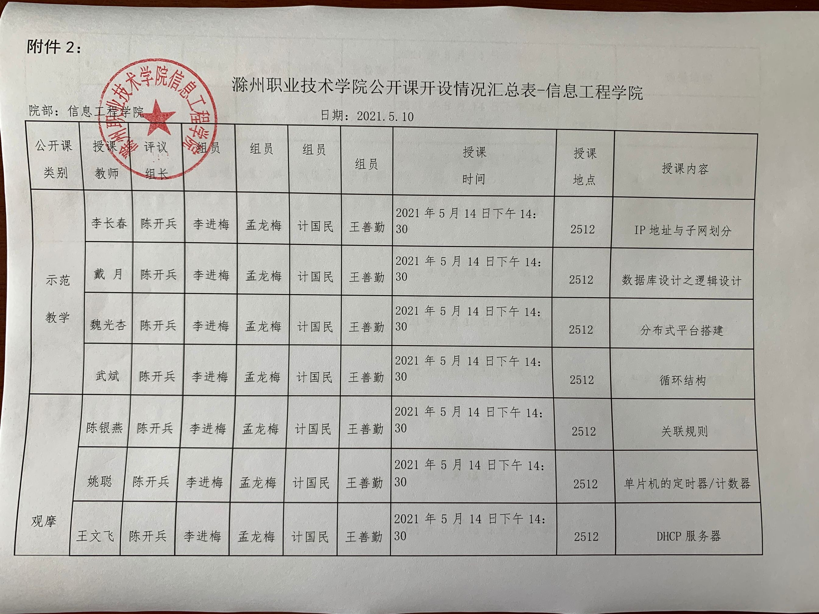 公开课开设情况汇总表公示,公示期:2021年5月10日-5月14日,共5个工作日,若有异议请反馈至:0550-3854579.