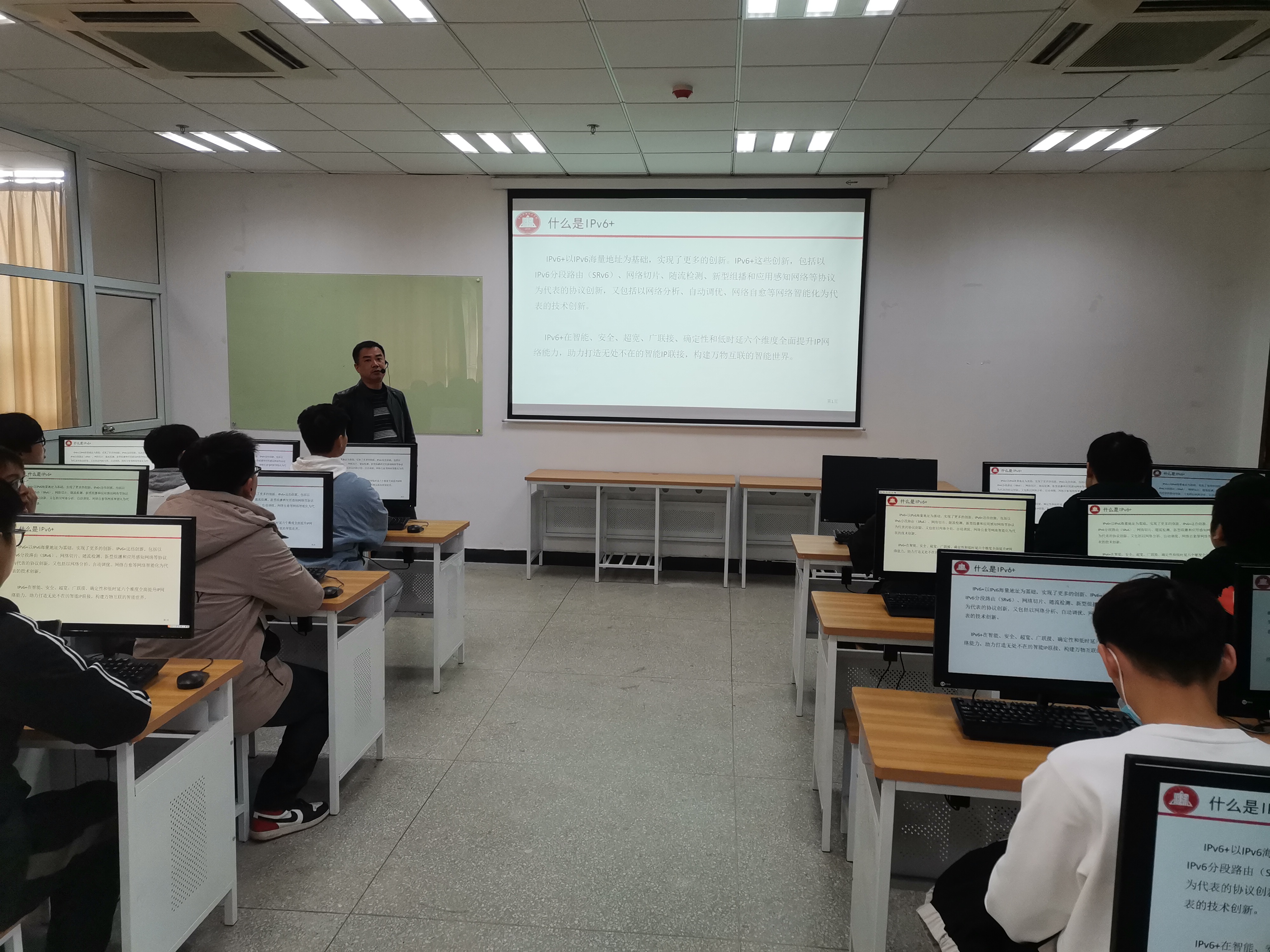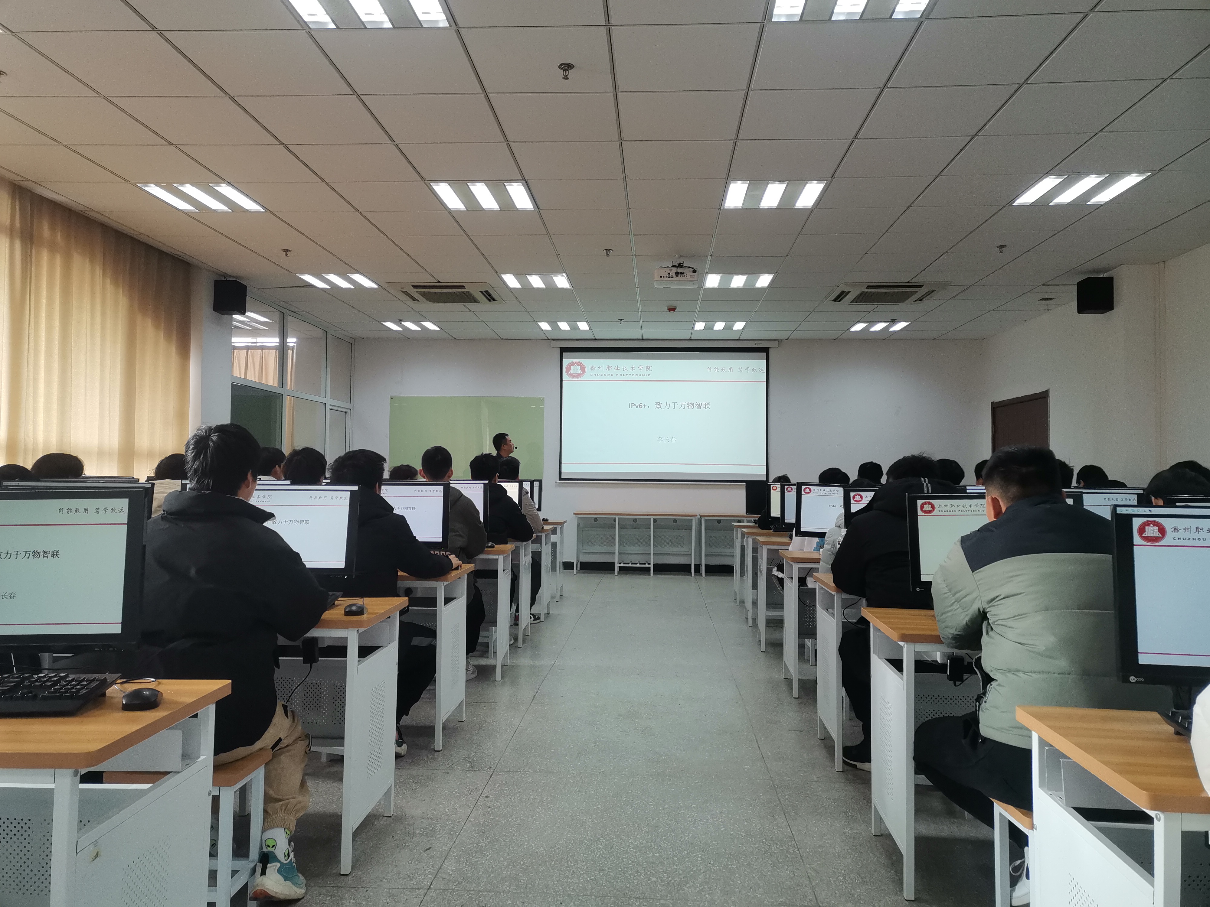 2021年12月15日下午,信息工程学院李长春老师在综合楼Z403实训室,举办题为《IPv6+,致力于万物智联》的学术讲座,信息工程学院计算机应用技术专业学生听取了讲座。