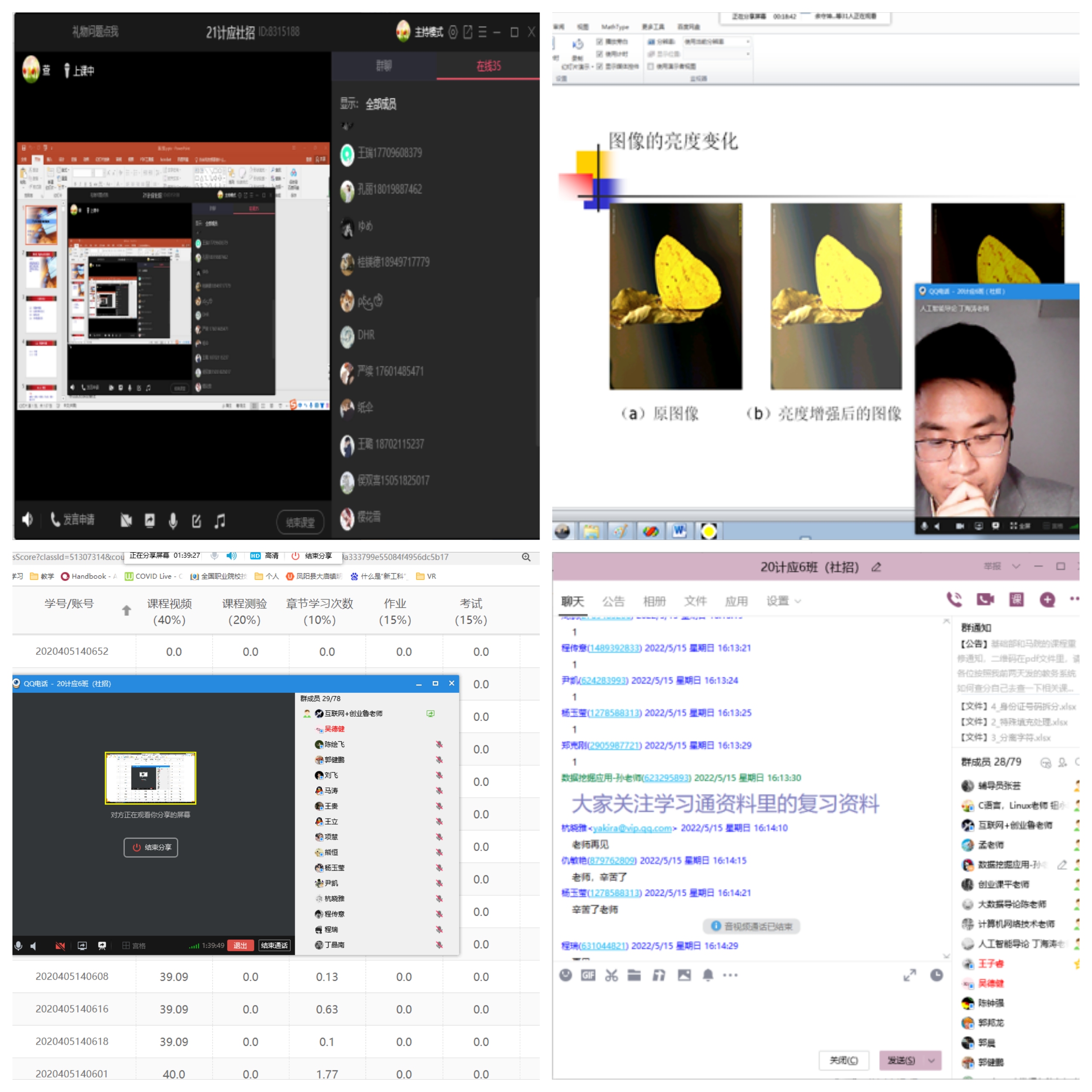 5月14日、15日我院积极开展了20级、21级社招班的第三次线上直播授课,采用了腾讯会议、班级群QQ屏幕共享等直播形式。授课教师们课前认真备课,根据社招特点,因材施教,使课程内容更适合社招学生理解。课上进行了多次互动或提问,学生对课堂内容能够理解,达到了预期教学效果。课堂上,老师们也不断叮嘱学生务必遵循防疫要求,做好个人防护。